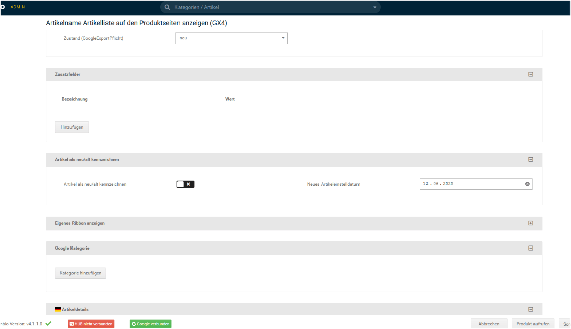Durch die Installation des Moduls erhalten Sie bei der Bearbeitung der Artikel einen Schalter und ein Datumseingabefeld, mit dem Sie den Artikel als neu/alt kennzeichnen können. Der Schalter ist bei Beginn jeder Bearbeitung immer ausgeschaltet, so dass der Artikel nur als neu/alt gekennzeichnet wird, wenn Sie den Schalter explizit umschalten.