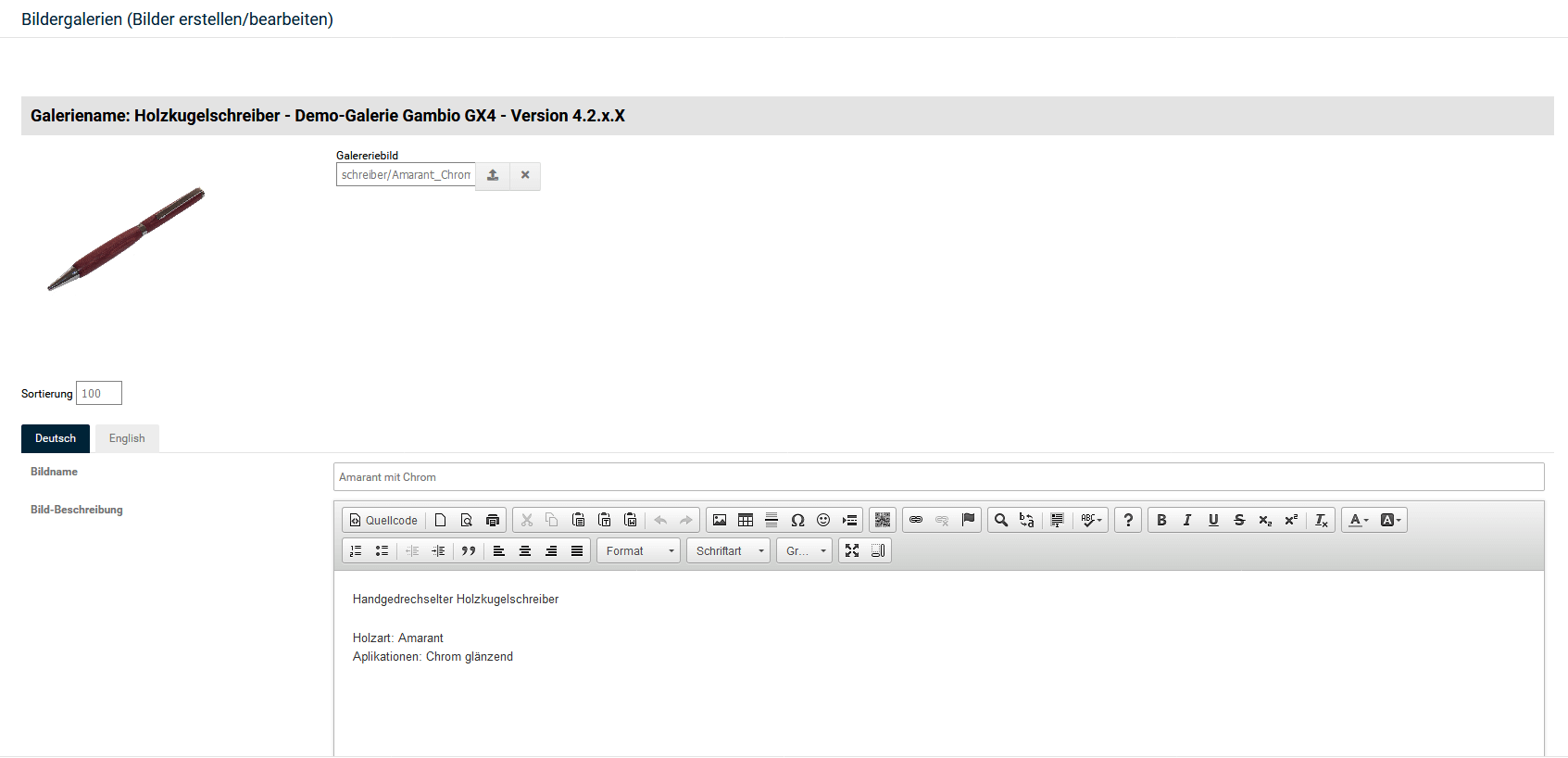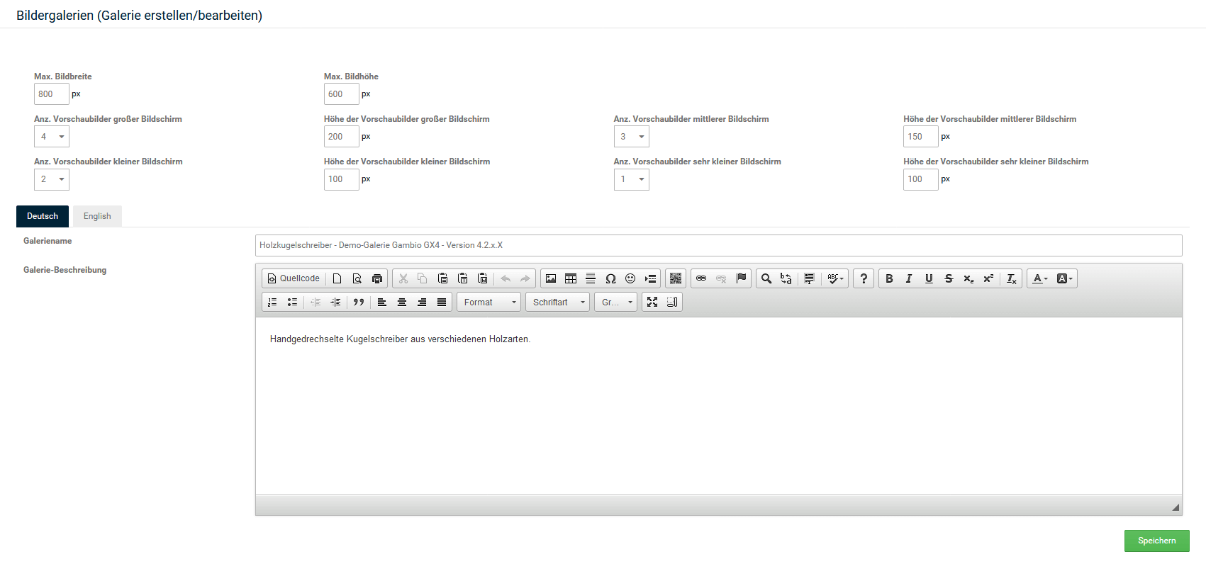 Sie können für jede Galerie eine Überschrift und einen Beschreibungstext erfassen. Innerhalb der Galerien haben Sie für jedes Bild die Möglichkeit eine Überschrift und einen Beschreibungstext zu erfassen.