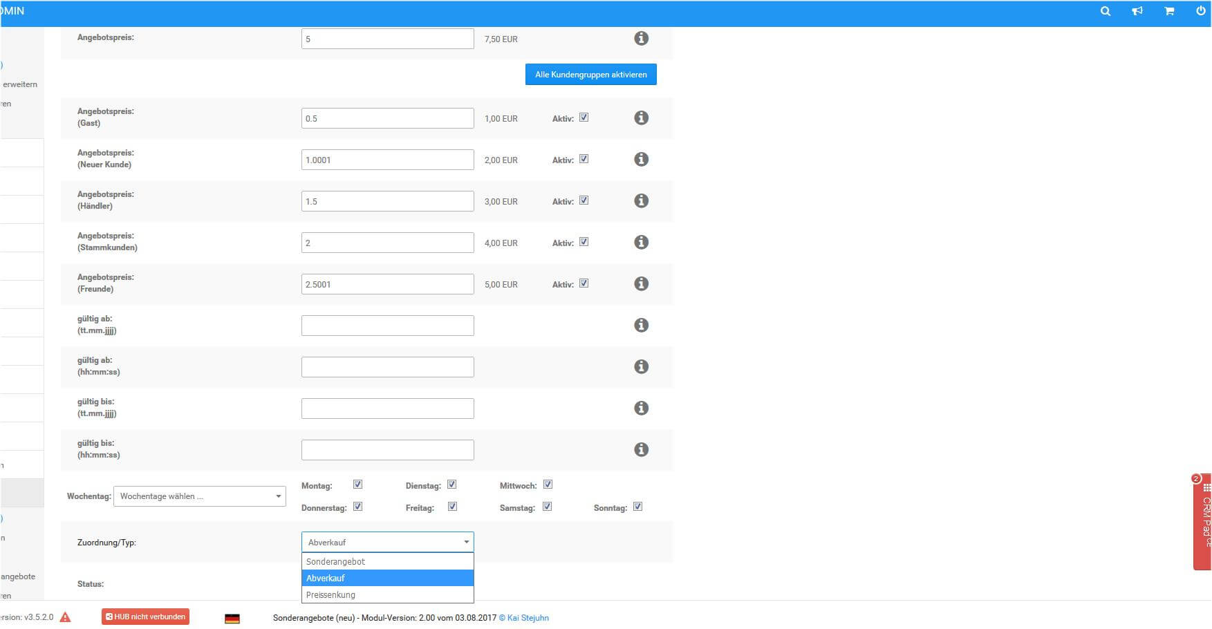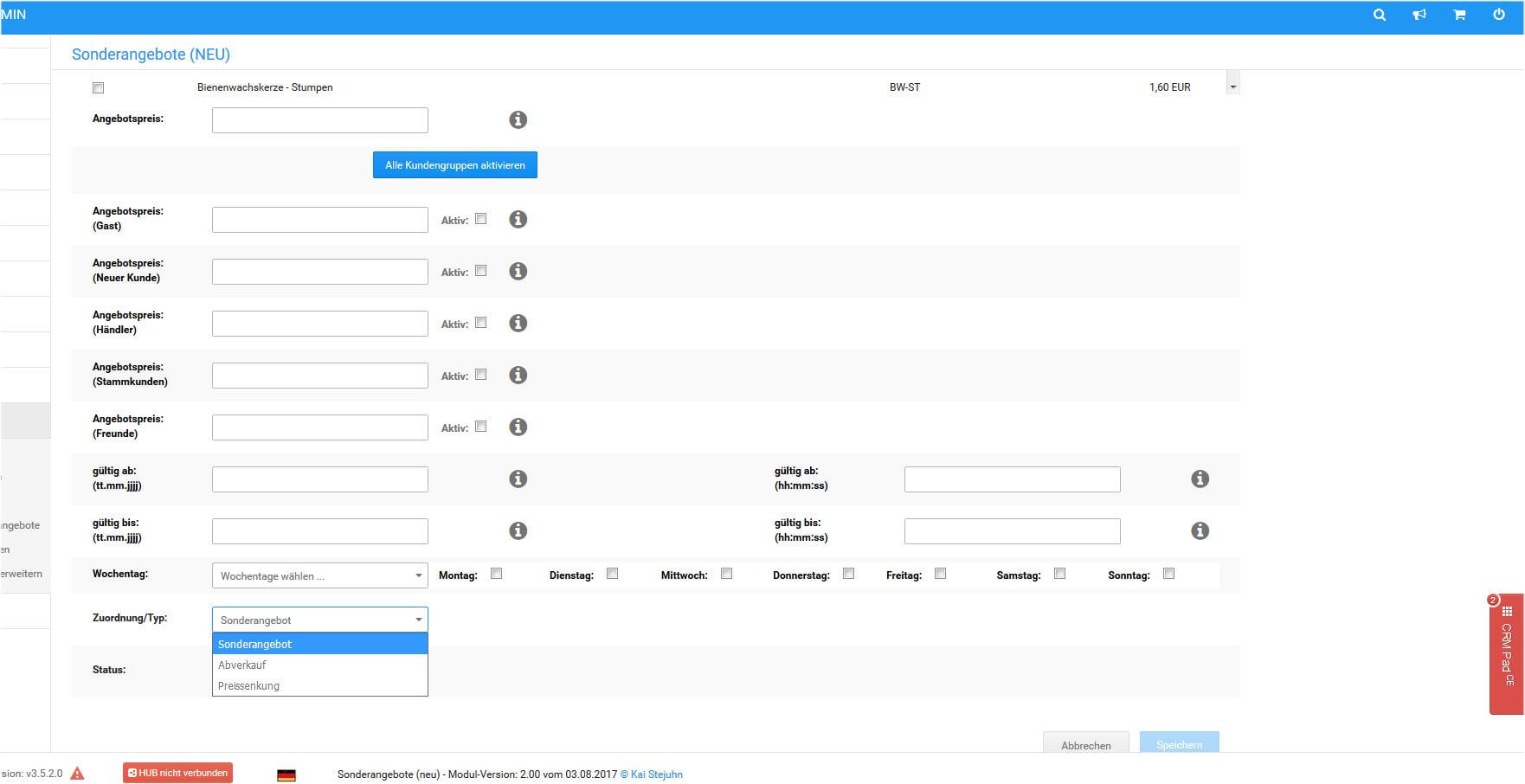 Achtung!! Dieses Zusatzmodul ist nur in Verbindung mit dem Modul "Sonderangebote (GX4)" lauffähig.